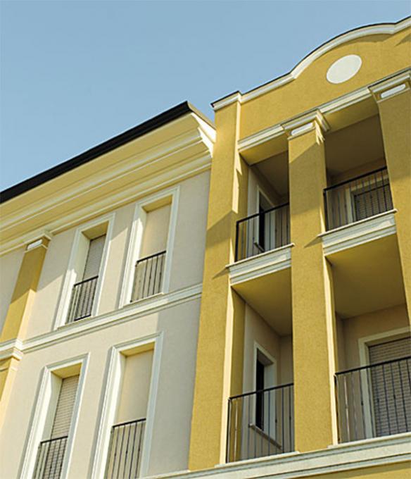 硬質発泡ポリウレタンを素材とした外装用モールディング。