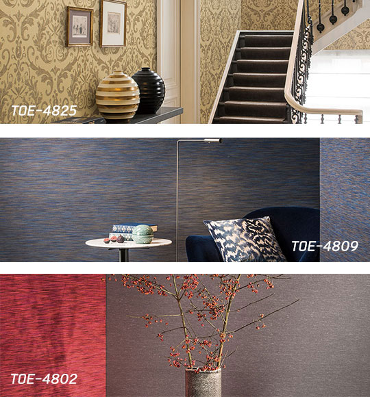 「TEXTURE AND COLOUR V」は、厳選した素材、その特性を生かしたテクスチャーやカラーを豊富に収録したトミタのベーシックコレクションです。日本の伝統技術や最新技術を用いた、時代を超えて求められる高品質な壁装材を揃えました。