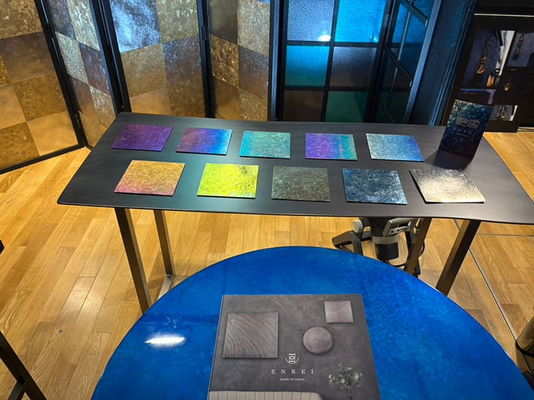金属でありながら、温かみと柔らかさが感じられ、特別な空間を演出します。表面の仕上げパターンとカラーは数種類の中からお選びいただけます。
