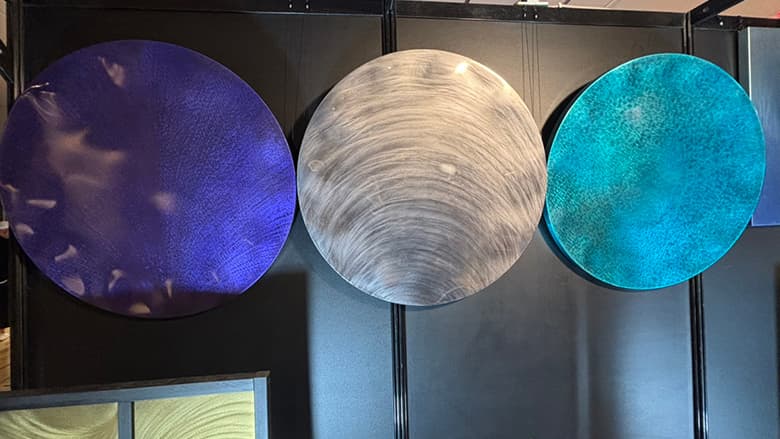 艶麗ボードは、ステンレスやチタンの金属製ボード表面に、自然を感じさせる、一つずつ表情が異なる模様を施し、独特の表面仕上げを表現しております。
