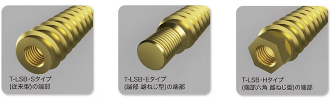 ■Sタイプ(従来型)、E タイプ(端部 雄ねじ型)、H タイプ(端部六角雌ねじ型)の3タイプをご用意して、様々な接合方式に対応致します。