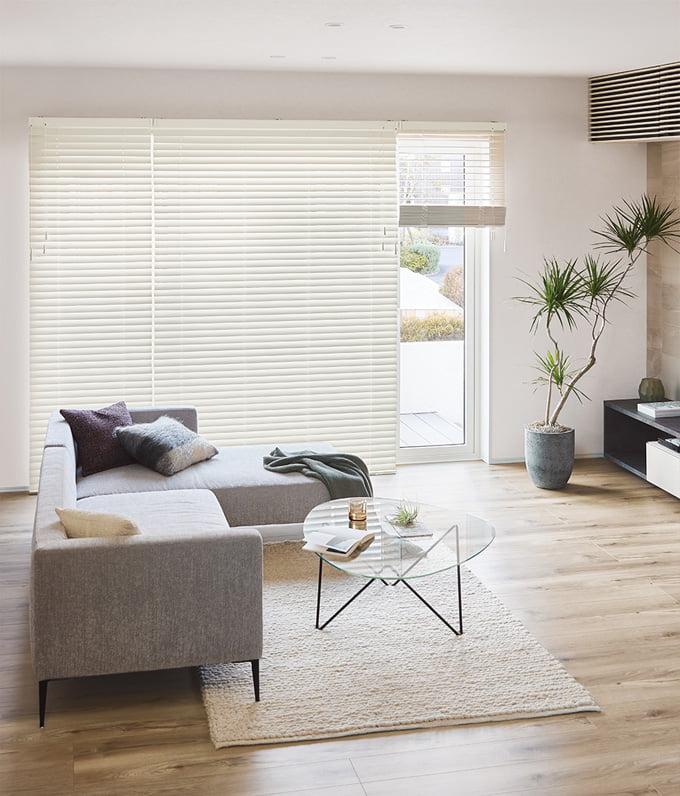 ループ状のコードを使用しない新しい操作方法を採用し、引っ掛かりや絡まりのリスクを軽減したウッドブラインドで す。操作は、グリップを片手で引くだけ。引いたコードは自動で戻るため、コードが垂れ下がることもなく、すっきりと した見た目を保てます。操作グリップは子どもの手が届きにくい位置に設計され、柔らかな素材で安全性にも配慮。 さらに、天然木の質感を生かしたデザインにより、環境にも貢献しながら、上質な空間を演出します。使いやすさと デザイン性を両立した、新しいウッドブラインドです。