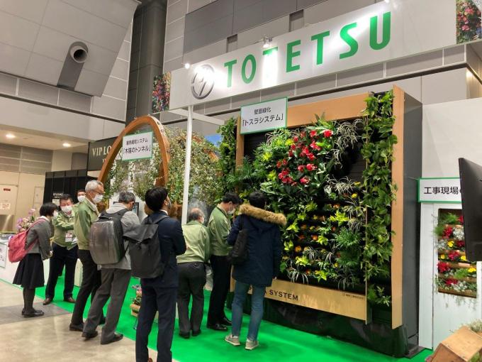 弊社ブースでは、壁面緑化「トスラシステム」及び暑熱対策「木陰のトンネル」の実物展示を行います。