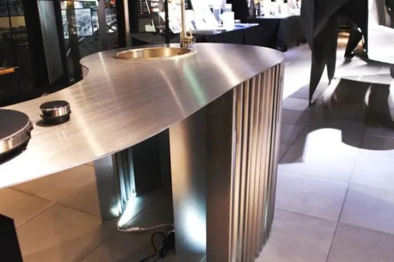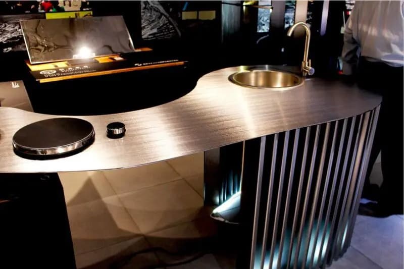 自由曲線での切断が可能なステンレスは、従来の製品では実現できなかった新たな形状の天板デザインを提供。