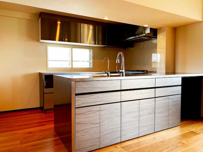 オーダーキッチンパネルにホワイトステンレス製"梅枝"をご採用頂きました。