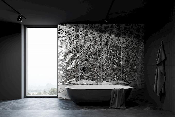 美しいさざなみの3Dステンレスが、浴室を幻想空間へと導きます。