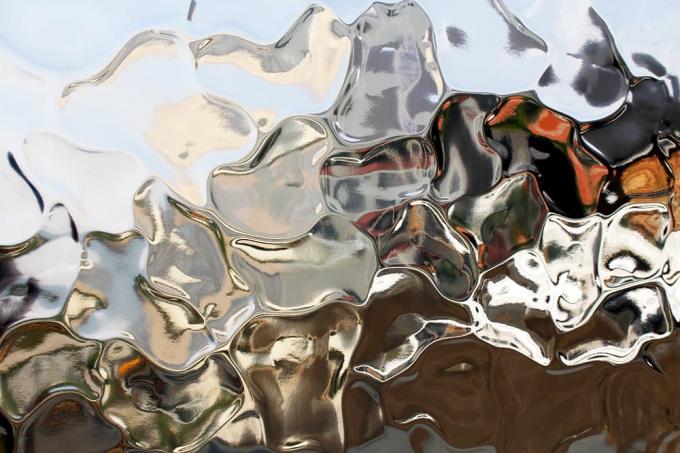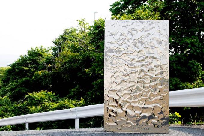 チタン表面に特殊バフミラー加工を施したミステリアスチタンミラーは、チタン素材特有の艶かしい鏡面を持ち、風景の写り込みや光の煌めきの反射もステンレス製ミステリアスステンレスミラーとは違う表情となります。