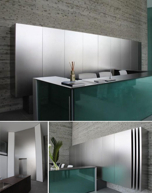 板状の素材形状で幅広くお使いいただける材料でもあり、加工して美しいフォルムとなった半製品や完成品など幅広い形態でご提供しております。 私達、金属化粧師としての誇りと自信にかけて日々、進化をし続ける意匠金属マテリアルです。