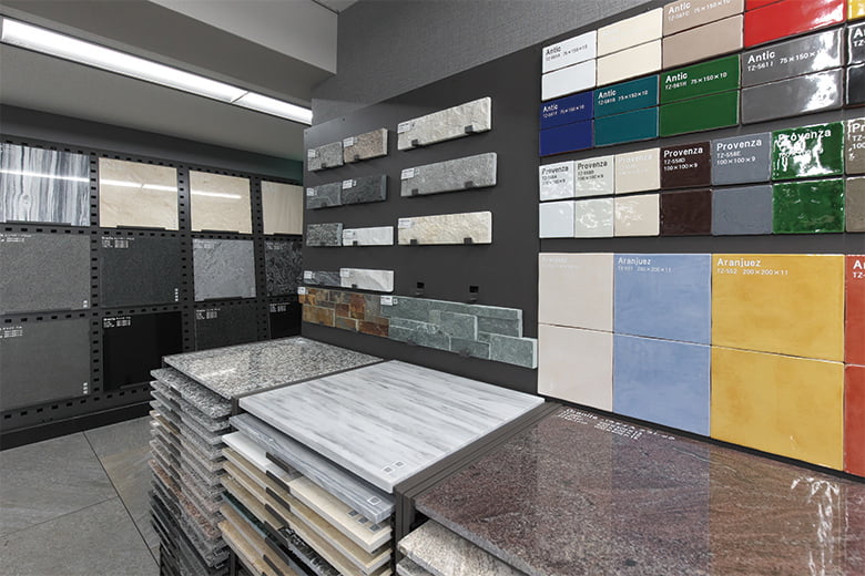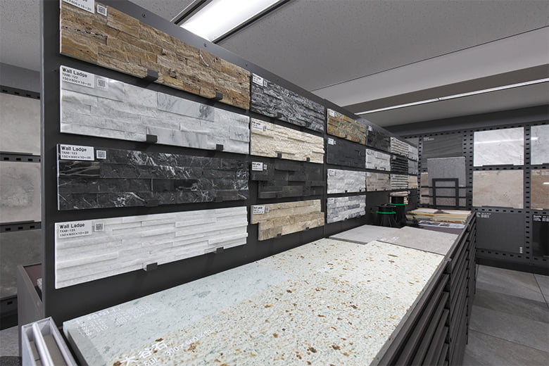 東洋石創がプロデュースするショールームでは、プロが選んだ世界各国の選りすぐりの石材やデザインタイルから雑貨商品などをご覧いただくことができます。