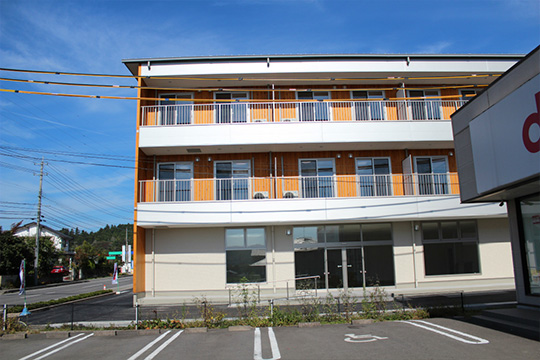 WOOD.ALCは国産材を活用した、CO2削減と低炭素社会の実現に貢献する壁用木製集成材です。耐火性や断熱・調湿性、強度にも優れています。今回、そんなWOOD.ALCを外壁に使用した共同住宅にシッケンズが塗装されました。木目を生かした仕上がりが素材の雰囲気を生かしています。
