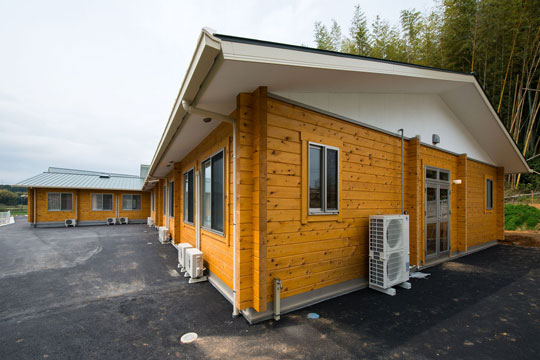 ログハウス造りにすることで、国産材(ヒノキ)をふんだんに活用でき、森林環境保全にも貢献しています。ご入居者様にも木材の落ち着いた雰囲気を味わってもらえます。