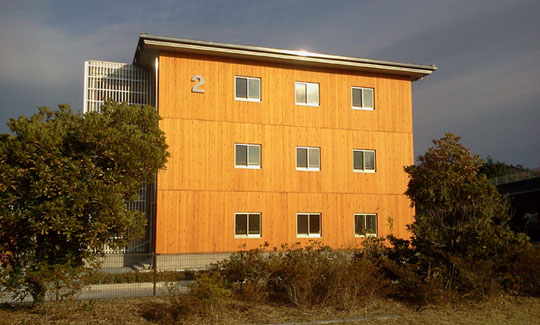 提案型復興公営住宅に採択されたこの「いわき市常磐関船団地」ですが、外壁にふんだんにWOOD.ALCが使用されています(素材はスギ)。木質部材を使うことで、温かみのある外観に仕上がっています。
