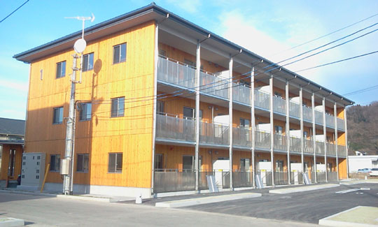 WOOD.ALCは国産材(スギやヒノキ)の厚板集成板で、構造材ではありませんが壁材としては1時間準耐火をクリアし、断熱効果にも優れた木質部材です。今回、福島県いわき市の復興公営住宅にWOOD.ALCが使用されシッケンズが塗装されました。WOOD.ALCのシッケンズ塗装事例第3弾となります。