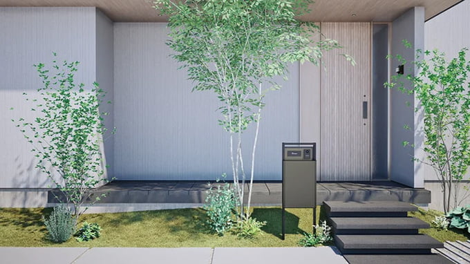 宅配ボックスやポストの開口部・操作部を外扉で覆うことで、外観のノイズを排除し、洗練されたファサードを実現します。