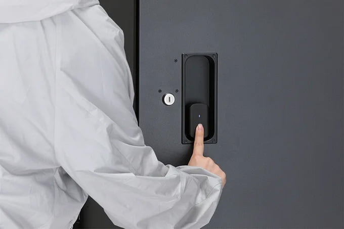 指をタッチするだけで解錠。鍵を持たずに使えるスムーズな認証方式です。