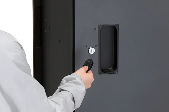 施錠は、宅配物を投入後に、宅配業者が内扉のつまみを回すことで完了します。荷物を取り出し、取出扉を閉めると、自動的に次回の荷物を受け取れる状態になります。