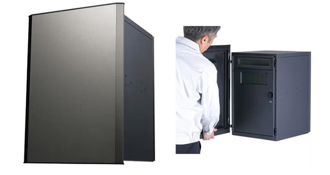 宅配業者は、荷物を投入後に扉のつまみを「Lock」に回すだけで施錠が完了。