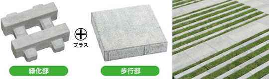 緑化部と歩行部を組み合わせることで、敷設アレンジも可能。