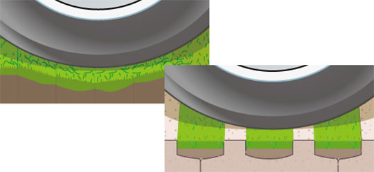 芝生の列植が可能なため、従来の植生用ブロックに比べ、芝張りが簡単です。