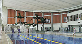 横浜市 市民プール 施工場所:プールサイド壁面。屋内プールで響きわたる反射音を低減。