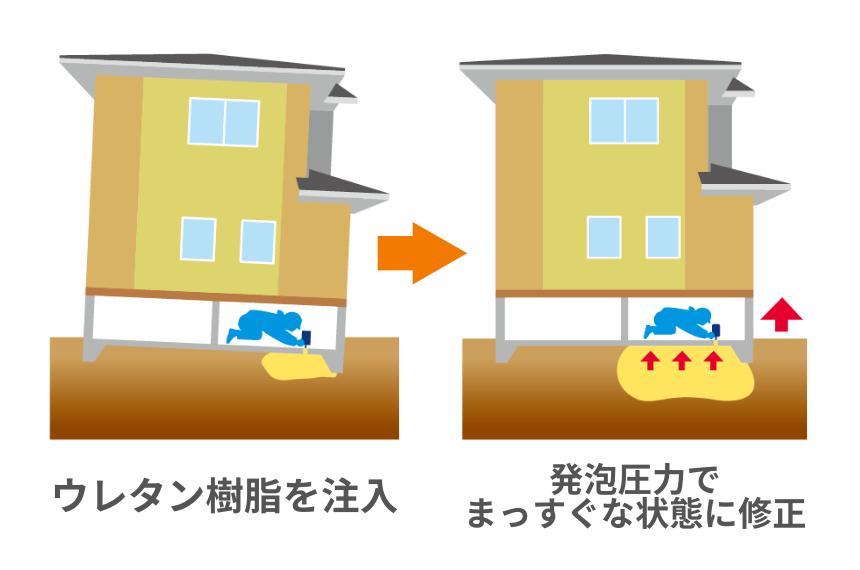 地震や地盤沈下等によるベタ基礎住宅の傾きを素早く修正!