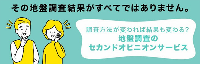 結果が変わる要因として、「表⾯波探査法」が地盤に⽳を開けない⾮破壊式であるためです。⽳を開ける地盤調査の場合、過⼤な圧⼒を加えるため実際の地盤強度を過少に評価してしまう事があります。