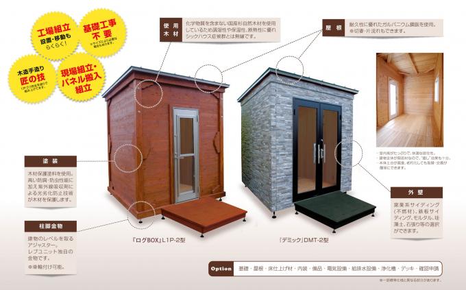「レブユニット」は、「在来軸組工法」と「板倉工法」を日本で初めて製品化した移動式木造住宅です。