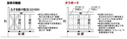 倒れない!多機能真壁耐力壁「タフボード」 巾455と巾600で