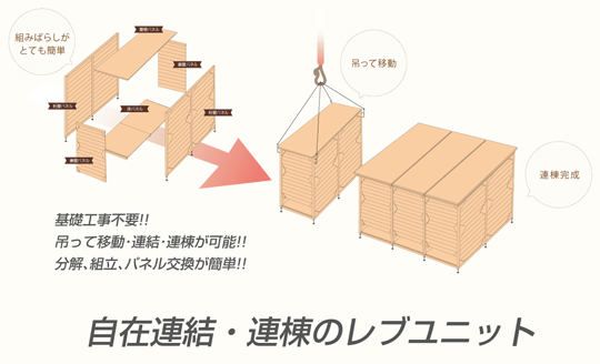 日本で初めて移動式にした木造のユニットハウス「レブユニット」