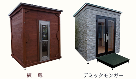 和風テイストな『板蔵』は、全てのシリーズのプロトタイプなので、設計も自由自在にオーダーが可能です。室内外壁の仕上げも木質仕上げでログハウス風のデザインのユニットハウス(タイニーハウス)となっています。