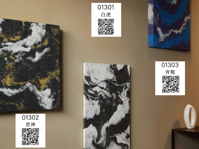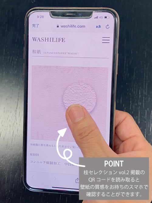 こちらの見本帳は写真ではなく高感度スキャンの技術で取り入れた画像と、それぞれの商品にQRコードがついているので製品の読み取りも可能で、全国各地の和紙も取り扱っております。
