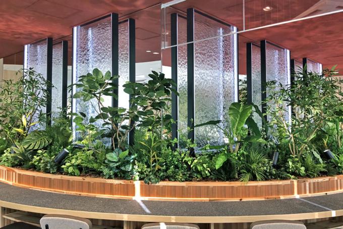 室内にいながら滝を楽しめる新発想の水演出パネル。