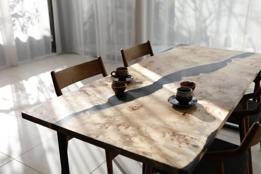 レジン(樹脂)を融合させ、今までにないテーブルやカウンター、アートパネルなどを作っています。