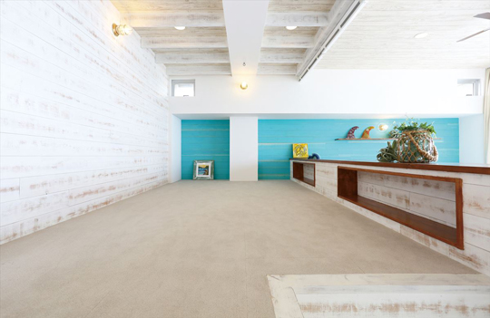 荒木ホワイト(AR-W1)とターコイズブルー(TA-B)で沖縄らしく開放感のある部屋になりました。