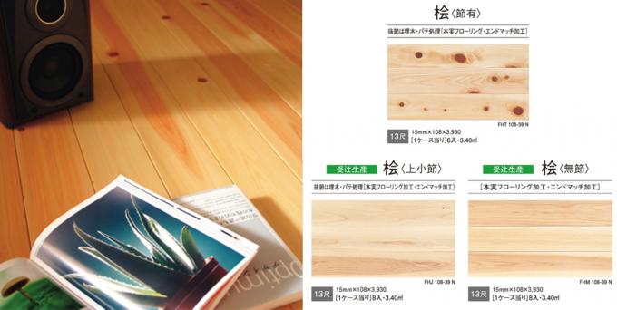 狂いが少なく、腐りにくく、耐久性にも優れている為、柱をはじめ土台、造作、建具などに幅広く用いられ、現在ではフローリング、羽目板にも人気があります。