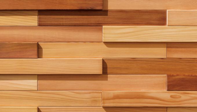 レッドシダー特有の色の濃淡に、更に凹凸が加わった質感の高い壁材です。