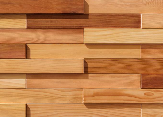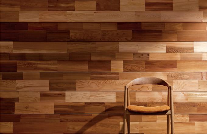 特有の色と凹凸で質感の高い壁材に。302×906㎜のパネルにピースをはりつけてあるため、簡単な施工で複雑な模様が表現できます。レッドシダー特有の色の濃淡に、更に凹凸が加わった質感の高い壁材です。