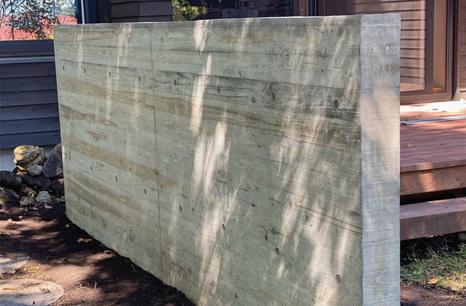 表面はフラット、コンクリートの圧で少し木目がでます。(約0.5㎜)