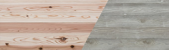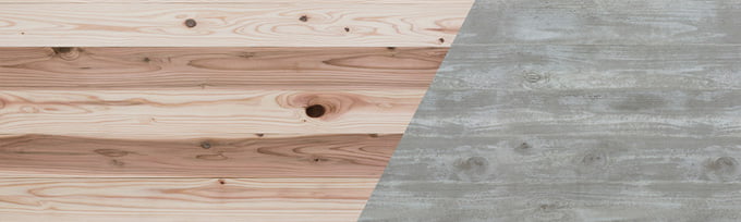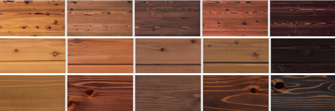 着色タイプは焼杉ブラッシング仕上げの上に含浸型の塗料で着色しており冬目が黒く出ます。