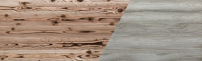 乾燥した杉板の表面を焼いて炭化し、ブラッシングをします。炭化することで耐久性が増します。
