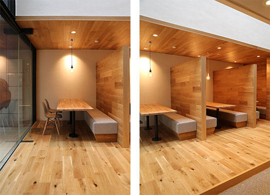 「LiveNaturalプレミアム RUSTIC土足用」は、天然木素材の豊かな個性にあふれたRUSTICな表情と、土足使用に適した強度と耐久性をそなえており、カフェなど店舗をはじめとする非住宅に最適なフローリングとなっています。
