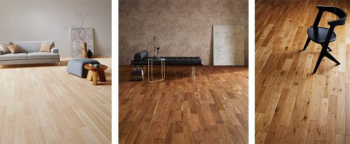 3つの樹種それぞれの特徴を活かしたフローリングは美しく贅沢な空間を演出。お好きなカラーや木目感も選ぶ楽しさも広がります!