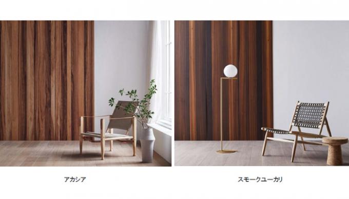 朝日ウッドテック株式会社は、天然木の素材感を楽しめる木質壁・天井材ブランド「the wall」の突き板シリーズに、高級感のある表情が人気の新樹種「アカシア」「スモークユーカリ」を追加いたします(2020年11月2日発売開始)。