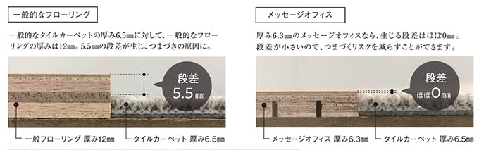 段差を抑え、つまずきリスクを軽減 ― タイルカーペットと同等の厚み 6.3mm