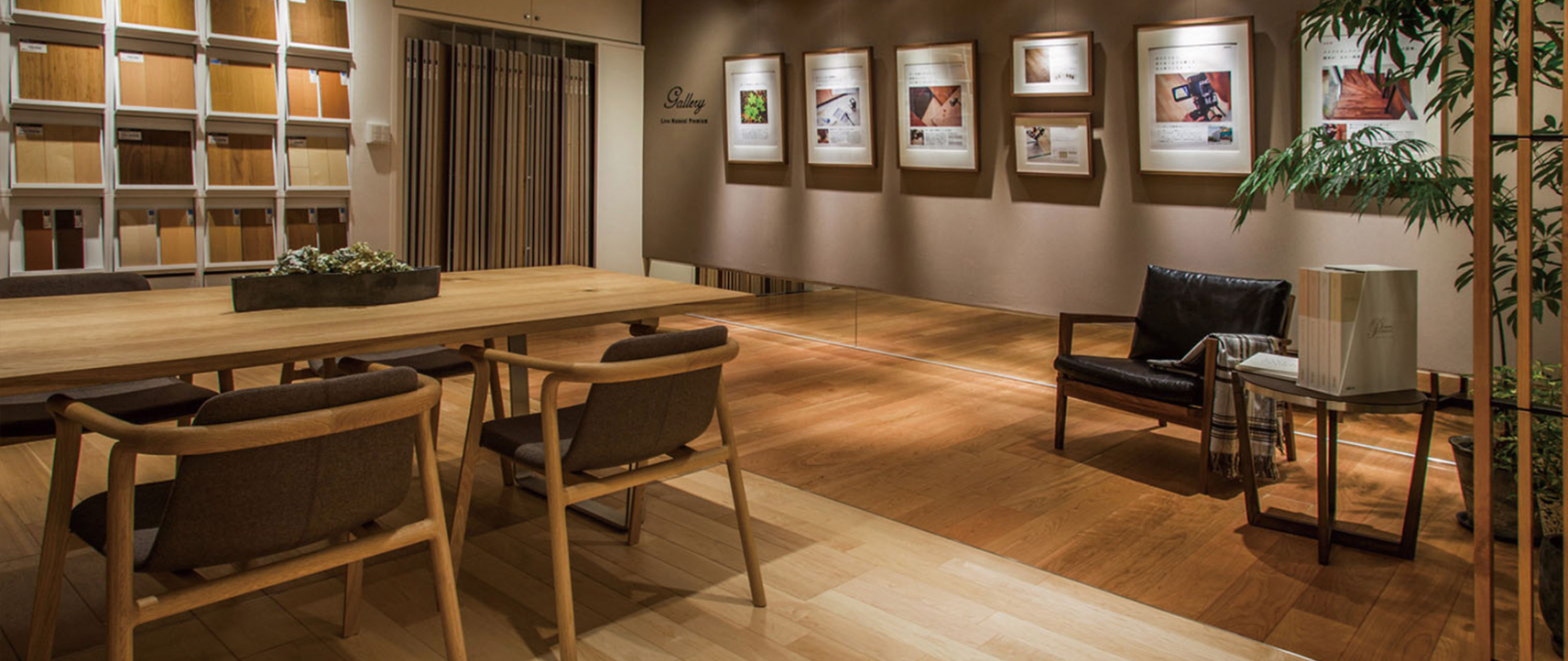 名古屋ショールームは無垢材挽き板化粧フロア「Live Natural Premium」体験ショールームとしてご覧いただけます。