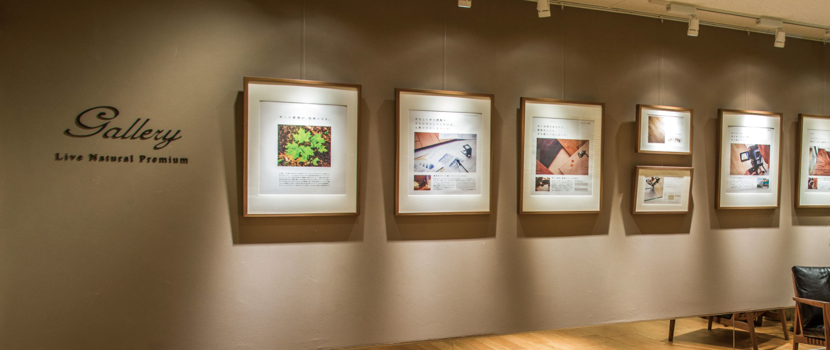ショールームでは靴を脱いで素材、ディティール、色調など実際に触れて感じて頂けるよう展示。 照明による見え掛かりの違い、床暖房の快適さ、踏み感を裸足で体感していただけます。住む人の記憶に残るような床材を作りたい、その思いと技術を昇華させた「Live Natural Premium」の魅力を是非ご体感ください。