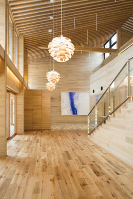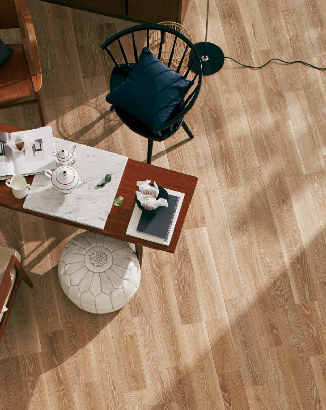 靴を脱いで、素材、仕上がり、足触りを体感していただけます。ご好評いただいております床材Live Natural Premium、Live Natural、 壁材クールジャパン、the wallも大面積で展示し、それぞれの樹種の魅力をご堪能いただけます。