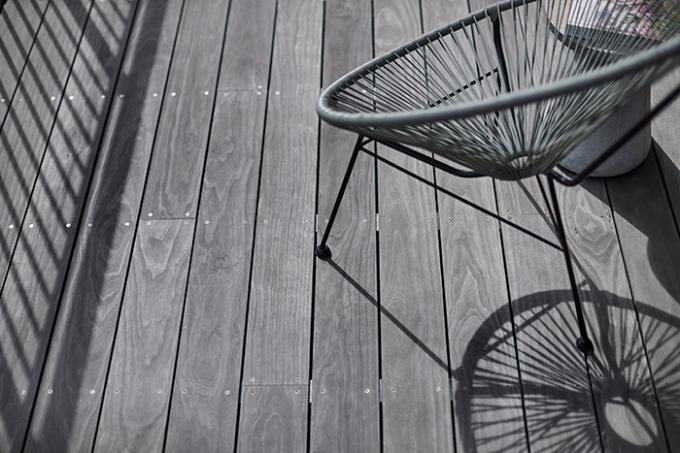 特徴的な見た目に、優れた防腐性能と寸法安定性能を併せ持つ、安心・安全・サステナブルな屋外用の高耐久化天然木材です。
