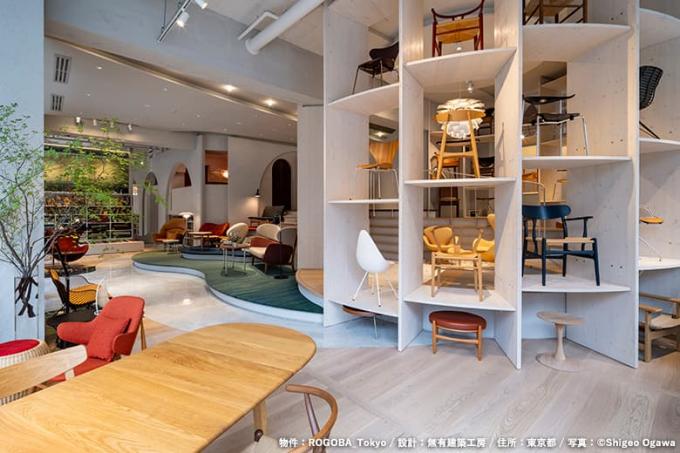 ロゴバキリムと北欧家具の専門店「ROGOBA_Tokyo」で、積層ソリッドパネルの大判サイズを大胆に活かしたディスプレイ什器に採用して頂きました。