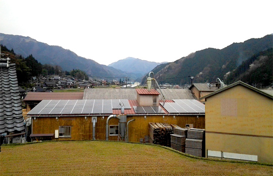 当社の工場の屋根に50kw (20分の1メガ) の太陽光発電システムを設置いたしました。これによりにCO2と太陽の光、水で育つ木材を太陽エネルギーで製材、加工するという循環が生まれました。